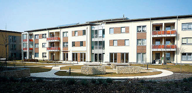 Die barrierefreien Mietwohnungen, die vorwiegend für ältere Bewohnerinnen und Bewohner vorgesehen sind, stehen unter dem Leitbild "Gemeinschaftliches Wohnen mit Service". Das dreigeschossige Gebäude befindet sich in einem engen städtebaulichen Zusammenhang mit der umliegenden Wohnbebauung. Die Gemeinnützige Baugesellschaft zu Hildesheim AG zeigt ein hohes Engagement, was zu positiven Impulsen im gesamten Stadtteil führt. So ist sie gut vernetzt mit Serviceanbietern und arbeitet im Stadtteilbüro sowie im örtlichen kriminalpräventiven Gremium mit. Kriminalpräventive Wirkung haben z. B. ein Seniorensicherheitstraining und die Bildung einer AG 55 plus. Vielfältige Beteiligung der Bewohnerschaft - z. B. in Mieterversammlungen - gewährleistet eine sehr kundennahe Entwicklung des Wohnobjekts. Gemeinschaftsräume fördern den Kontakt der Bewohnerinnen und Bewohner untereinander.